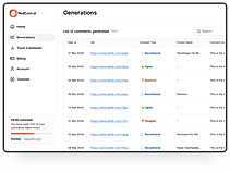 Stepping into the bustling realm of Reddit, where each comment can sway a reader's curiosity or fade into obscurity, RedCom.ai emerges as a game-changer for digital engagement. Whether aiming to capture attention towards the site, product, or service, this ingenious AI platform crafts comments that resonate with human touch and authenticity at the click of a button. Seamless personalization is at the core of RedCom.ai, ensuring responses align effortlessly with the ebb and flow of online discussions. By meticulously analyzing post titles, descriptions, and existing comments, RedCom.ai generates refined responses that entice interaction, magnifying the online presence. Ideal for sectors ranging from affiliate marketing to e-commerce or software services, the tool draws in the right audience, directing quality traffic to the digital doorstep. Not only does it smartly tailor contributions to the Reddit universe, but it also provides useful analytics to track, assess, and enhance the visibility and impact of the comments. With RedCom.ai, step up the Reddit game and witness the engagement soar.